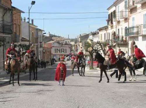 Altra particolarità della manifestazione è data dal percorso in salita, come a riprodurre il cammino della Via Crucis verso il sacrificio compiuto da Gesù. La processione comincia alle 10 partendo dalla Chiesa di Santa Maria Lauretana. E’ la banda musicale di Roseto ad aprire la processione con l’inno che il maestro Donatelli compose nel 1882, un’opera intitolata “E’ morto il Re dei Re”, che il complesso bandistico rosetano esegue da 127 anni solo in questa occasione.