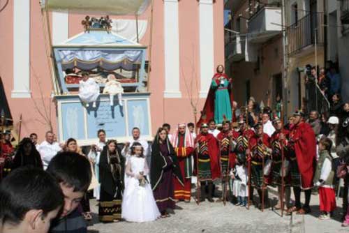 Un ruolo importantissimo, all’interno dell’antico rito, è riservato ai bambini. In processione, vestiti di bianco, portano i simboli della Passione di Cristo: il gallo, i chiodi, il calice, le scalette e altri emblemi della Via Crucis. Giunti sul calvario, gli stessi bambini indossano una fascia nera, mentre le Marie si velano il capo in segno di lutto aprendo la scena alla Pietà.