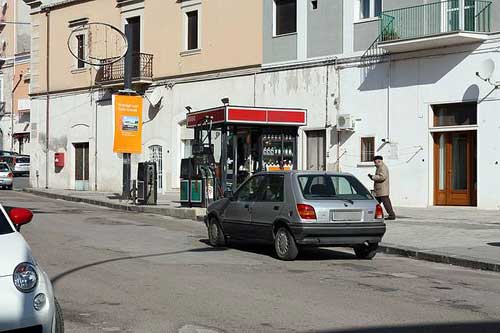 Clicca per Ingrandire “Cari concittadini, questa vuol essere ancora una volta la testimonianza dell’incapacità politica del nostro paese a risolvere i problemi. Uno di questi, sotto gli occhi di tutti, è dato dal distributore Esso in via Manfredi, di fronte a Piazza Marconi, e il distributore ex Total sempre in via Manfredi. Come facilmente si può notare, sono collocati parte sul marciapiede pubblico e parte sulla strada. E così capita sovente, soprattutto la mattina, di subire ritardi a causa di auto ferme in attesa di effettuare il sospirato pieno di carburante.