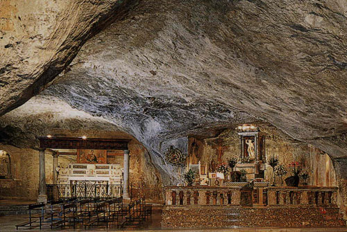 Clicca per Ingrandire Per Giuseppe Piemontese, parlare nel Medioevo di viaggiatori equivale a parlare di pellegrinaggi, considerati "cammino verso la salvezza". Gli occhi bruciati da vento e sole, ogni cristiano era in continuo viaggio, in cerca di un senso da dare alla propria vita, ricco o povero, sano o infermo, santo o peccatore, ma tutti accomunati da uno stesso sentimento: riacquistare la fede perduta e con essa la salvezza eterna. I grandi itinerari - fondamentali per l’organizzazione viaria e marittima, la fondazione di chiese, monasteri e mercati, ma soprattutto per la creazione di una comune cultura europea - si snodavano lungo le rotte marine o i sentieri d’Oriente per raggiungere la Terrasanta, verso le strade per Roma e lungo il "cammino di Santiago" de Compostela (le guglie del Santuario nella foto sotto n. 2; la prima è Mont St.Michel in Francia). Ma cosa rappresentarono queste mete per il mondo cristiano? Per Franco Cardini, la Terrasanta fu la massima forma di pellegrinaggio cristiano, soprattutto nei momenti storici in cui era pericoloso raggiungerla: era la terra promessa, mèta ultima del lungo pellegrinare dell’esistenza. Roma, era la "città santa", sede del successore di Pietro. Per giungervi, i pellegrini provenienti dal Nordeuropa seguivano la strada del passo del Brennero o la via Francigena. A Santiago de Compostela i cristiani del Medioevo pensavano fosse sepolto l’apostolo San Giacomo, ma il santuario divenne ben presto il simbolo della "riconquista" cristiana della Spagna contro i Musulmani. A queste classiche vie sacre se ne aggiunse una quarta: la Via Sacra Langobardorum, denominazione legata alla presenza dei Longobardi sul Gargano, che del santuario dell’Arcangelo (la grotta di S.Michele a Monte Sant'Angelo nella foto del titolo) fecero il loro santuario nazionale e ne diffusero il culto in tutta Europa. Paolo Diacono ricorda in un epitaffio il fervore devozionale della regina Ansa, moglie di Desiderio, e la sua febbrile attività nel costruire, lungo la Via Sacra, xenodochi e ospizi per i pellegrini in viaggio verso la venerabile grotta angelica. La strada univa direttamente Benevento a Montesantangelo, ma presto collegò l'Europa occidentale alla Terrasanta tramite i porti di Brindisi e Otranto. Il Gargano divenne così uno dei centri della spiritualità medievale cristiana, “punto focale” nel processo di cristianizzazione e civilizzazione, traguardo ambìto da parte di chi aveva ambizioni di predominio nell’Italia centro-meridionale (A. Petrucci). Lungo le sue vie si riversarono migliaia di pellegrini provenienti da tutto il mondo. Il santuario di S.Michele, soprattutto durante il periodo delle Crociate, divenne tappa obbligata per il passaggio in Terrasanta e sostegno ideale ai crociati. TERRY RAUZINO