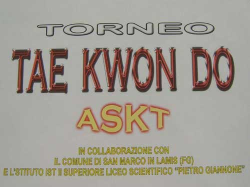 Successo bissato lo scorso 26 aprile, questa volta nella garganica San Marco in Lamis, al torneo organizzato dall’ASKT (foto 4), con la partecipazione del Maestro Kim, cui hanno partecipato le associazioni dei paesi del territorio garganico: Apricena, San Marco in Lamis, Cagnano Varano e Peschici. Tredici i “combattenti” peschiciani, undici dei quali hanno trionfato aggiudicandosi il primo posto e due classificati al terzo posto (foto 5-6). Ancora un en-plein per gli atleti del M.tro Tavaglione, giustamente soddisfatto dei risultati ottenuti.
