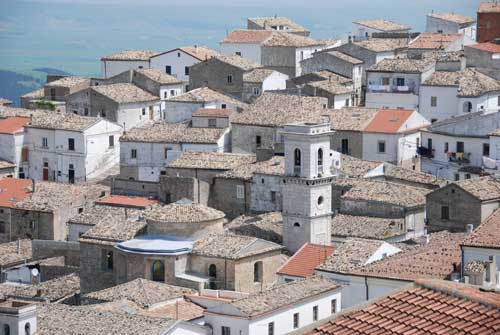 Clicca per Ingrandire Un pullman di gitanti di Peschici, organizzato dalla locale Associazione Culturale “Punto di Stella” promotrice dell’iniziativa (alla sua quinta “uscita”, e non ha ancora compiuto un anno di vita), ha raggiunto due centri sui Monti Dauni che si stagliano alti sul Tavoliere. Prima tappa, Bovino (altitudine 647 mt.), circondata da colline coperte a tappeto di ginestre di recente fioritura, nuvole di giallo profumo, e sterminate chiazze di papaveri. Un formidabile colpo d’occhio.