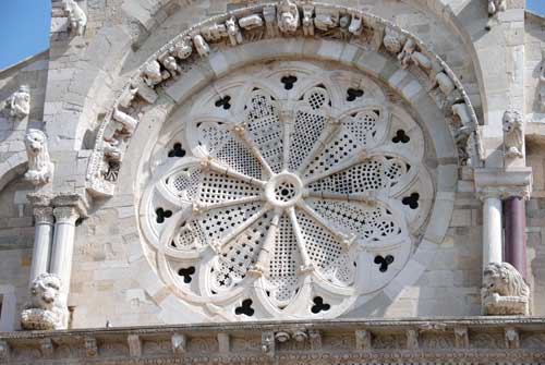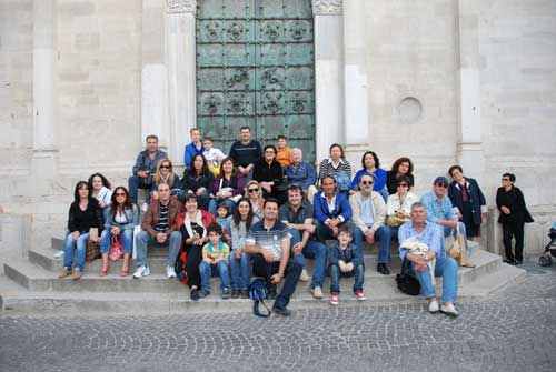 Più tardi il gruppo, atteso da esperte guide, si è immerso in un autentico bagno di arte e spiritualità lasciandosi fagocitare dall’imponente Cattedrale Romanica (foto 8), impreziosita da colonne dai meravigliosi capitelli e da un ambone ricco di storia e di “segni”. La superba facciata, sormontata dall’ormai “famoso” Rosone (foto 9), è anche resa illustre dalle porte di bronzo firmate e realizzate dal maestro Oderisio agli inizi del 1100. Nel bronzo, dai colori ossidati, spiccano otto teste di leone con battaglio stretto fra i denti e due draghi che sembrano sul punto di alzarsi in volo.