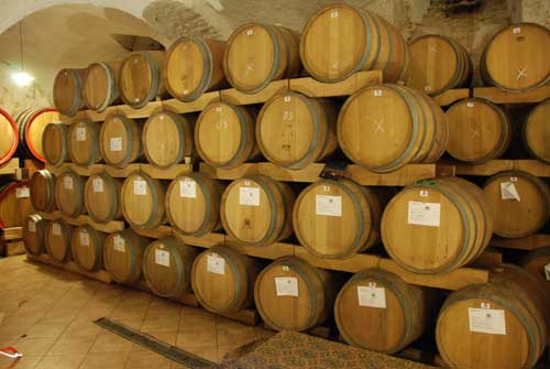 Seconda tappa del viaggio, Troia (altitudine 439 mt.), a un quarto d’ora di pullman da Bovino. Dopo un “familiare” pranzo tipico nel ristorante “D’Avalos” (foto 6), gestito da uno chef dalla fisionomia spagnolesca padre di sedici figli e dalla simpaticissima moglie… Elena, nel primo pomeriggio i partecipanti hanno potuto degustare il vino “Di-vino”, il rinomato Nero di Troia, nella freschissima cantina sotterranea (foto 7), accolti dall’ospitale proprietario-“vignaiolo”, Mario Ciarmoli.