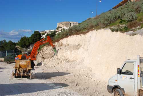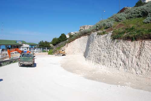 La nuova sede viaria è stata ampliata di oltre 4 metri, passando dai poco meno di sette a più di undici nella parte più larga, cioè nel tornante che difficoltà e disagi ha creato negli anni a turisti e trasportatori che vi si sono imbattuti. Il progetto, oltre a prevedere l’allargamento delle corsie, ha aumentato il raggio di curvatura del tornante (foto 3-4-5). I numeri parlano chiaro: oltre duemila metri cubi di roccia sbancati per posizionare i muri prefabbricati, che oggi fanno bella mostra di sé lungo il tratto di statale che dà il benvenuti a Peschici a tutti coloro che lo percorrono; 1.250 quintali di binder e asfalto per migliorare e pavimentare la sede stradale; più di trenta uomini impegnati nella realizzazione dell’opera (6-7-8).