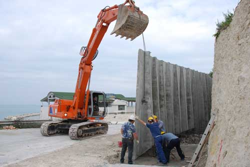 Tra questi è doveroso ricordare i quattro tecnici provenienti dalla vicina L’Aquila, colpita dal violento terremoto del 6 aprile scorso, che hanno posato i pannelli prefabbricati (foto 9-10), di cui è quantomeno opportuno sottolineare l’impegno e l’abnegazione dimostrati: lasciate le loro poche cose rimaste dopo il terremoto, da autentici professionisti si sono spostati a Peschici per completare il lavoro lasciato in sospeso durante il periodo pasquale mantenendo fede all’impegno preso e consegnando l’opera in soli 3 giorni.
