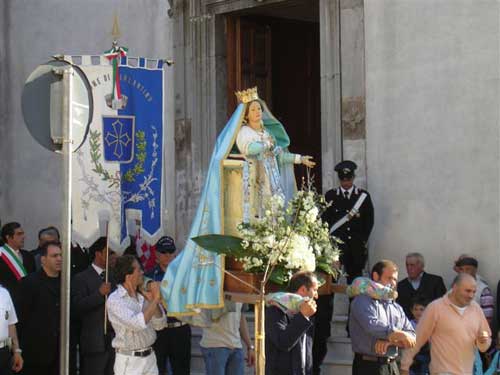 Clicca per Ingrandire Domenica 24, Carlantino avrà una Cittadina in più: la “Madonna della ricotta” (foto del titolo; ndr), che riceverà le chiavi del paese dal sindaco Vito Guerrera. Ha molte particolarità la festa che si celebrerà domani, un evento religioso che mette insieme il culto per la Vergine con i frutti più saporiti e genuini della natura. Poche altre ricorrenze hanno la peculiarità di unire nelle stesse tradizioni e radici culturali tre regioni diverse. La festa della “Madonna della ricotta” deve il suo nome a una consuetudine ormai lontana, quella della transumanza.