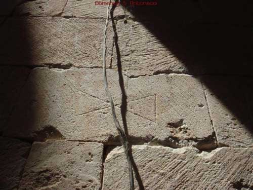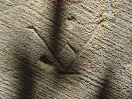 Avendo imparato a conoscere il “fiuto” del nostro amico e adesso anche di altri personaggi come il presidente Barrella (un po’ meno, ma altrettanto valido, quello di chi l’ha accompagnato: Sara Di Bari, Vittorio Fusillo e Antonio Antonacci, oltre ovviamente ai componenti del Gruppo Argod), ci siamo piacevolmente lasciati attirare dal suo nuovo reportage fotografico, in cuor nostro sperando - non possiamo esimerci dal rivelarlo - di trovare fra le immagini la testimonianza di quanto ci sta assillando da vario tempo. E così, fra una lettera alfabetica e una sorta di firma, geroglifici e disegni di vario genere, frecce ghirigori e scarabocchi (anche), è saltato fuori, chiaro e netto, il “segno” che speravamo di trovare. Lo si può vedere nella foto del titolo: tre quadrati concentrici! (La differente colorazione gliel’abbiamo data noi per meglio risaltarlo.) Gli altri sono in calce all’articolo.