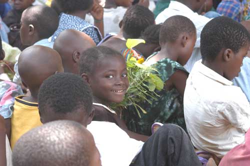 Si avanza con la processione tra due lunghissime ali di confirmandi che oggi sono quasi duecento. Danzano, pur restando fermi. Ancheggiano ritmicamente, con quella stupenda eleganza che ti fa avanzare come in un viale di giovani piante, belle e ondeggianti. “La messa da noi è sempre una festa!” mi ricordava in sacrestia un prete nero. Verissimo. Arrivati all’altare, trecento occhietti su sfondo scuro ci attendevano, puntati verso l’assemblea. Tutti i bambini sono ammucchiati, assiepati nello spazio absidale, attentissimi.
