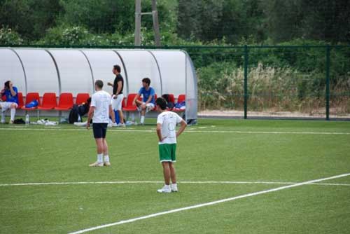 Clicca per Ingrandire Si è svolta ieri pomeriggio sabato 6, risultato finale 5-1, al nuovo stadio inaugurato pochi giorni prima da ragazzini forestieri, mentre i nostri stavano a guardare (non è una polemica, non c’interessa veramente chi sia stato a giocare per primo), una partita di 110 minuti che ha visto i ragazzi del Liceo Scientifico contro quelli dell’Istituto Tecnico del Turismo di Peschici. Nonostante sia stato un incontro amichevole - per stare insieme e confrontarsi, un modo di chiudere l’anno scolastico in maniera poco usuale e originale - la partita, arbitrata dal mister Michele Sciotti (foto del titolo; ndr), si è subito accesa: grinta e voglia di vincere muovevano i componenti di entrambe le formazioni.