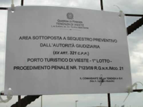 Clicca per Ingrandire I militari della tenenza della Guardia di Finanza di Vieste, su disposizione della procura della Repubblica di Foggia, hanno posto sotto sequestro preventivo (foto del titolo, il provvedimento; ndr) il primo lotto del porto turistico di Vieste dall’accesso sul Lungomare Europa (foto 1 sotto).