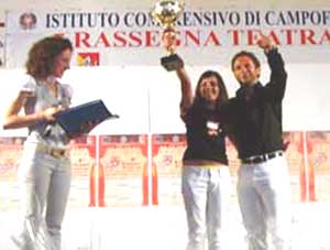 Nella piazzetta di Via Giannone, adiacente la Villa Comunale, gremita di pubblico partecipe e commosso dalla recitazione veristica delle lament-at(t)rici, si è svolta la lunga veglia funebre per la buona madre, il “pellicano” del titolo, che si sacrifica per i suoi figli. La “piccola” della Compagnia, Asya Tedeschi, ha dimostrato ancora una volta di aver meritato il premio di attrice non protagonista (foto 1 sotto) al Festival di Campofranco, perché commuove la sua dolente ed estenuata interpretazione di Nunziatina. Il suo Pigmalione, il regista diplomato al Dams, Stefano Biscotti (foto 2, alla premiazione), ha ben plasmato la sommessa interprete della presenza-guida della famiglia colpita dal lutto e precipitata nel caos della visceralità.
