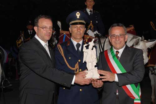 Il sindaco ha quindi consegnato al dott. Antonio Manganelli un quadro artigianale in argento sbalzato, raffigurante San Michele Arcangelo, e in chiusura di manifestazione ha rivolto al Capo della Polizia l’invito a celebrare a Monte Sant’Angelo la prossima festa nazionale della Polizia di Stato. La giornata si è conclusa con una parata della fanfara della Polizia di Stato per le vie della città (foto 2-3).