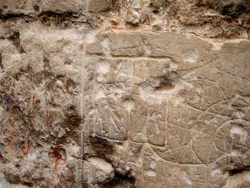 Da notare, ancora, una serie di cerchi intersecanti posizionati vicino al quadrato prima descritto. In generale i cerchi intersecanti rappresentano uno dei lapicidi lasciato dai “magister muratori” per indicare che quella costruzione è stata sviluppata secondo i canoni della sezione aurea.