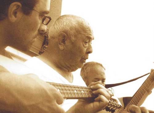 Clicca per Ingrandire A un anno dal lavoro discografico «All’use antiche», è uscito il nuovo Cd dei Cantori di Monte Sant’Angelo (foto del titolo e foto 3 sotto, in cartolina; ndr) intitolato «‘Nfanne ‘nfanne»*, in ricordo di Michele Totaro (‘Ciucquette’ = foto 1-2 sotto) che ha cantato quattro brani. Un brano è stato estrapolato da una clip video datata 1994, dove ‘Ciucquette’ canta insieme con Leonardo Grilli (‘Capille’) altro cantore di Monte Sant’Angelo, scomparso alcuni anni fa. Il nuovo cd, auto-prodotto e registrato da Peppe Totaro, contiene undici brani tradizionali: serenate, tarantelle e canti “alla stesa” caratterizzati dall’accompagnamento della chitarra battente e dall’armonica a bocca, le cui sonorità sono capaci di evocare magici scenari del passato e di scandire ritmi che rimandano alla grande vocazione contemporanea della musica etnica.