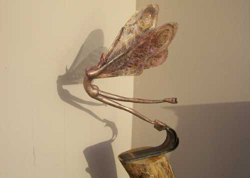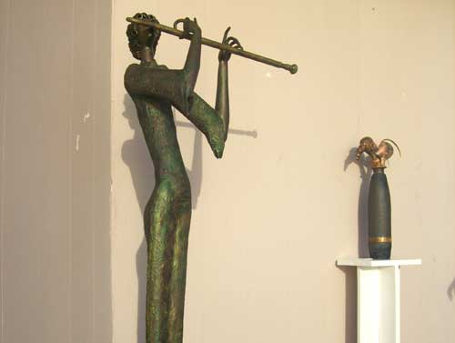 Lavora in un’officina, piegando il ferro alla propria volontà, proprio come un fabbro, ma anziché costruire inferriate e serrature, plasma la materia fino a ottenere figure stilizzate. Da un materiale pesante ricava figure leggere, esili, allungate, sempre protese verso l’alto. Il ferro è la sua seconda natura e lo forgia modellandolo a colpi di martello, mentre con l’altra mano brandisce la sua fiamma ossidrica per infuocare il metallo e renderlo docile al suo volere.