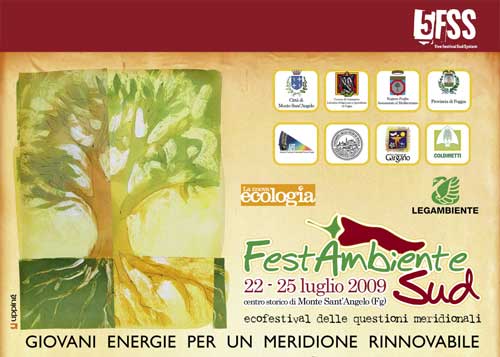 FestambienteSud è la festa nazionale di Legambiente per il Sud Italia, promossa dalla direzione nazionale di Legambiente e organizzata da Legambiente Circolo FestambienteSud, via Gambadoro 27, Monte Sant’Angelo (0884 565533 - info@festambientesud.it - www.festambientesud.it) in collaborazione con Arci Nuova gestione e il Diario Montanaro