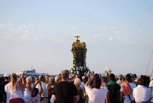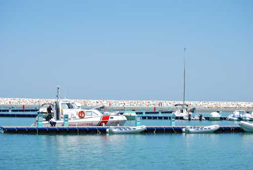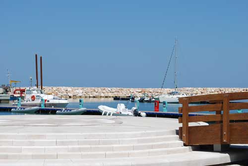 Clicca per Ingrandire Ore 12 di sabato 25 luglio. Siamo sul Porto di Rodi Garganico per il fatidico momento (foto deltitolo, ingresso del "Marina"; ndr). Ci sono le autorità, i giornalisti, le tv, i cittadini (rodiani in primis), i curiosi, c’è la Cidonio Spa (impresa costruttrice), la Remax (agenzia per la commercializzazione e promozione del “Marina”). Poi ci sono i “diportisti”, i già acquirenti di un posto barca, invitati per l’occasione a fare il loro primo ingresso con la loro barca o yacht (foto 1 sotto). Ma c’è soprattutto lo stupore dei presenti, la soddisfazione di tutte le persone che hanno lavorato a questo progetto, nel vedere “alla luce” il Porto con le barche, prospettiva che disegna un nuovo capitolo per la storia di questo paesino sulla costa del Gargano (foto 2), ma con il culto della conservazione dedicando alla Vergine SS. Della Libera il nome di quest’opera, situata proprio dove il quadro (foto 3), secondo la tradizione, si manifestò.