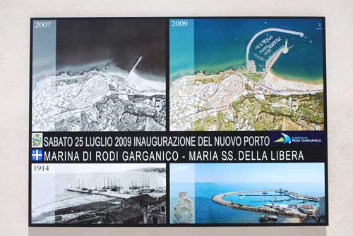 Con queste parole si apre la conferenza stampa che vede la presentazione del nuovo porto turistico di Rodi Garganico alla stampa locale e non. Segue, subito dopo, l'intervento del sindaco Carmine d'Anelli che, visibilmente commosso, anzitutto ha ringraziato Osvaldo Mazzola (amm. unico della P. Cidonio spa, ditta costruttrice) per aver creduto nel "sogno rodiano", ricordando come il porto sia nato per "sensazioni"; come oggi (forse anche per la protezione della patrona) sia diventato realtà passando per innumerevoli progetti fino a giungere a quello della Modimar (opere in mare) e della 3C+T (opere a terra), ma soprattutto sottolineando la novità del project financing (finanza di progetto) nell'ambito provinciale e, forse, regionale.
