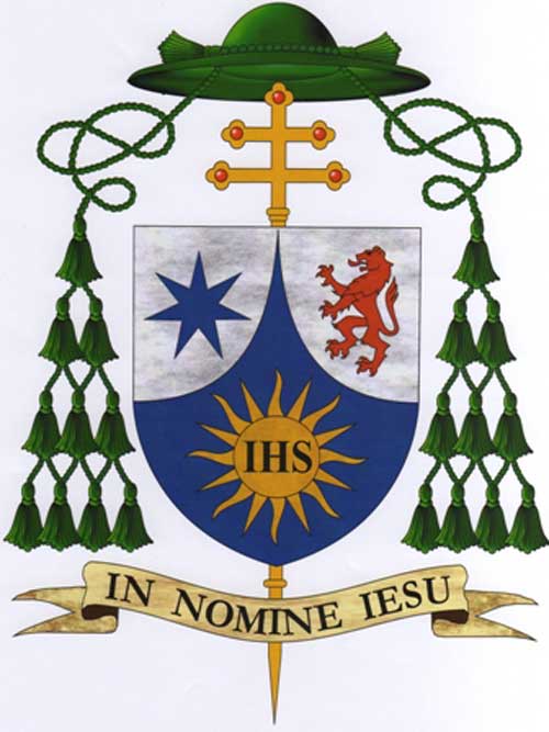 In nomine Iesu è il motto riportato nello stemma episcopale del nuovo arcivescovo. Il suo impegno pastorale, infatti, s’incentra tutto in Nostro Signore Gesù, come affermato nel testo del suo primo saluto alla Diocesi. Questa la descrizione che ne fa il sito della diocesi (vi consigliamo di leggerla tenendo d’occhio l’immagine ingrandita).