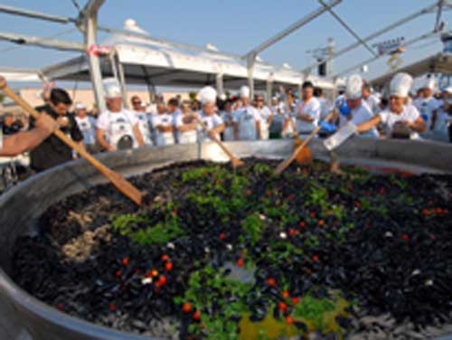 Clicca per Ingrandire Taranto è ufficialmente nella storia. Con una pepata di cozze di 3mila 692 kg, la “Città dei Due Mari” ha battuto di ben una tonnellata il Guinness World Record, che dal 2003 apparteneva alla città francese di St-Pierre-sur-Mer. Festa grande tra i 500 partecipanti (trecento in più rispetto ai previsti), che hanno spadellato a ritmo di musica nel piazzale del Centro Commerciale Mongolfiera. L'iniziativa, coorganizzata da Coop Estense, ha coinvolto anche i passanti e lo stesso giudice, visibilmente divertito dalla folla festante del centro tarantino.
