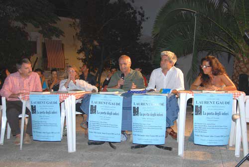 Clicca per Ingrandire “Dopo il grande successo di ‘Le soleil des Scorta’ – ‘Gli Scorta’ - Laurent Gaudé (foto 1-2 sotto; ndr), parigino di nascita e peschiciano di adozione, ritorna a parlare della terra garganica, nel suo nuovo romanzo che, partendo dalla terra di Partenope, celebra la forza dell’amore filiale in una Napoli più moderna che mai, traboccante di vita e di tragedia; una sfida all’aldilà e un’ode alla vita”, questa la nota introduttiva dell’assessore alla Cultura del Comune di Peschici, Leonardo Di Miscia (foto 3), organizzatore con Angelo Piemontese (foto 4) dell’incontro con lo scrittore francese per la presentazione del suo ultimo lavoro, il quarto, “La porta degli Inferi” tenutosi nella villa comunale di Peschici il 22 agosto (foto 5).
