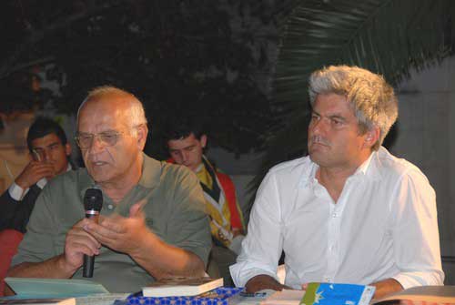 Questa volta a parlare è il prof. Angelo Piemontese, docente del Liceo Scientifico di Peschici e amico personale di Gaudé (foto 8). Dopo un breve riassunto del libro e della sua architettura narrativa, una serie di domande all’autore utili al pubblico, e ai futuri lettori, per porre chiarezza nel racconto che si muove parallelamente tra il 1980 e il 2002. Una per tutte: “Perché proprio Napoli sullo sfondo della vicenda? – Perché la città presenta un mix inedito di bellezza e devastazione, violenza e dolcezza, legalità e disprezzo delle regole; una miscela unica, un’alchimia di sensazioni avvolgenti come il caffè sapientemente preparato dal protagonista Filippo Scalfaro De Nittis”.