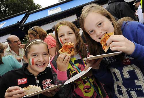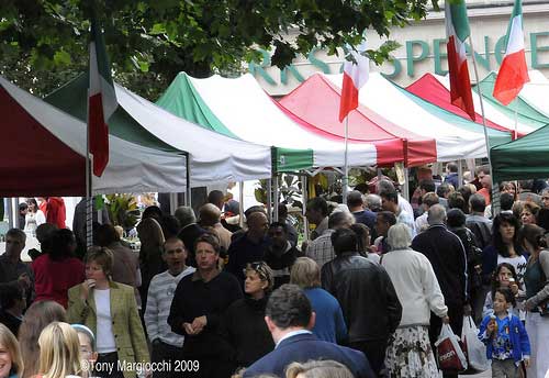 “Lasciatemi cantare con la chitarra in mano”, squilla intanto un giovane talento in piazza, ”sono un italiano vero!”, mentre bambini di ogni razza a frotte fanno a gara nel farsi dipingere il tricolore su una guancia, per una sterlina (foto 3). Scena incantevole. Tra il pubblico incantato vi sono pure cinesi, indiani, inglesi... e dall’aria sembrano desiderosi, chissà, di essere dei nostri!