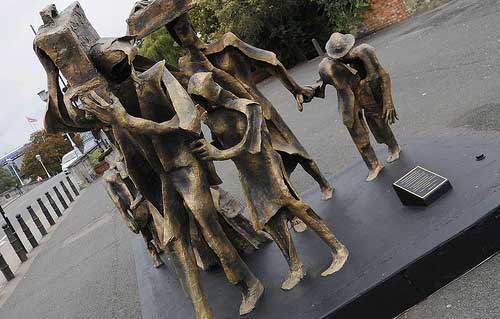 Un’immagine della loro storia la trovi proprio in centro città. E’ un monumento grandioso (foto 2) appena inaugurato di Giuseppe Martignetti, artista dell’avellinese Montefalcione, paese di migranti. Presi da un’emozione incredibile, vari personaggi in cemento bronzato sono accartocciati su se stessi, vuoti dentro. Hanno come perso l’anima. Un bue, un carro, accompagnati da una donna e un bambino, si trascinano da una parte, mentre dall’altra in senso contrario altri si lanciano, valigia in testa, in una fuga immaginaria. Capisci che hanno perso anche il corpo: la loro terra. Tragica avventura dei vinti dal destino, ma grandi nella storia, i nostri migranti!