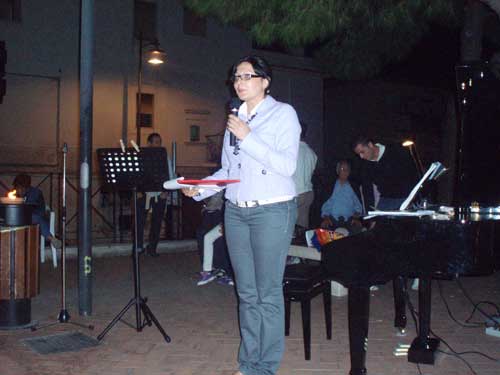 Clicca per Ingrandire Il 23 settembre si è svolto sul sagrato della chiesa di Sant’Antonio di Peschici il Concerto musicale in onore di San Pio da Pietrelcina nel 41° anniversario della scomparsa, organizzato dall’Associazione culturale musicale e teatrale “Arcobaleno” con la direzione artistica della prof.ssa Maria Antonietta Fasanella e condotto dalla prof.ssa Camilla Tavaglione.