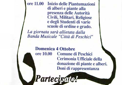domenica 4 ottobre - ore 10: cerimonia ufficiale della donazione di piante e alberi, e doni di rappresentanza, nella sede del Comune di Peschici, alla presenza del sindaco Domenico Vecera e dell’assessore all’Ambiente e Foreste, Michelino Vecera.