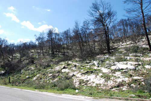 Clicca per Ingrandire Sono passati poco più di due anni da quel tragico 24 luglio 2007 che ha segnato indelebilmente la vita di tutti i cittadini di Peschici, ma già i segni della ripresa sono ben visibili: è iniziato il taglio delle centinaia di ettari di pini bruciati (sospeso nel periodo estivo per ovvii motivi) e già si può notare una distesa di piccoli nuovi alberi che sta rinverdendo le colline e i promontori della terra peschiciana. All’indomani di quella data si sono susseguiti eventi e manifestazioni organizzati da studenti, popolazione locale e nascenti associazioni culturali.