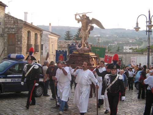 All’incontro, organizzato nell’ambito dei due giorni di celebrazioni in onore di San Michele Arcangelo, era presente anche Casa Puglia, il sodalizio che unisce le associazioni dei pugliesi in Piemonte. Le delegazioni hanno partecipato alla processione di San Michele (foto 2), cerimonia suggestiva e intensa impreziosita dalle partecipazioni del gruppo storico “Gli amis de la frola” di San Mauro Torinese, del vicesindaco di Foggia Lucia Lambresa (foto 1 sotto, con i sindaci del convegno) e dell’assessore alle Attività Produttive della Provincia di Foggia Pasquale Pazienza.