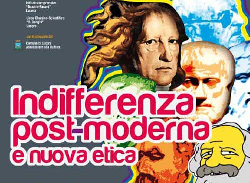 Il tema del convegno, “Indifferenza post-moderna e nuova etica”, trattato dal dott. Andrea Amato, funzionario della Biblioteca Provinciale di Foggia, e dal prof. Furio Semerari, ordinario di Filosofia morale all’Università degli Studi di Bari, rappresenta un’occasione per affrontare, con cittadini e studenti, un argomento di particolare rilevanza educativa e promuovere un interessante sviluppo delle competenze civiche tra le nuove generazioni.