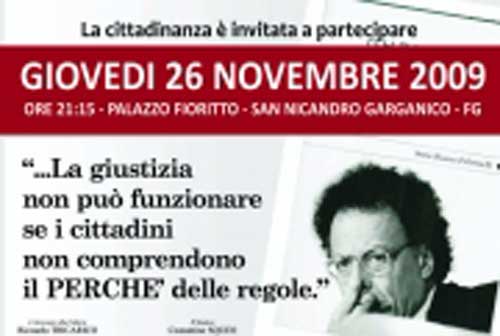 “Ho sentito l’esigenza di trovare un momento importante - commenta l’iniziativa l’assessore alla cultura Riccardo Tricarico - con la testimonianza di un protagonista della giustizia in Italia, per far comprendere anche ai cittadini di San Nicandro Garganico il senso delle regole e della convivenza civile in una società libera, plurale e democratica. Penso che la partecipazione di Gherardo Colombo nella nostra città porterà un notevole contributo a sensibilizzare il tema della legalità. Per questo, invito all’incontro - conclude - non solo gli addetti ai lavori della giustizia, ma soprattutto i giovani coi loro genitori a partecipare a un confronto e un dialogo che stimoli la consapevolezza dell’importanza delle regole nel pieno esercizio dei propri diritti”.