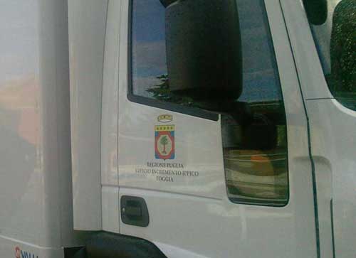 Dobbiamo pur dire (guardando con occhi da esperti del settore) che sconcia senz’altro la denominazione scritta sotto il logo. La Regione Puglia dovrebbe fare lo sforzo di comprendere che il prestigioso Istituto ippico non lo si può degradare e mortificare chiamandolo impropriamente UFFICIO... come si legge sugli sportelli del nuovo Van (foto 1 sotto).