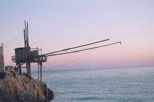 Clicca per Ingrandire Crolla un altro gigante. Le mareggiate invernali piegano i pali rimasti ancora in piedi, segnandone la sua fine. Crolla uno dei trabucchi di Peschici, crolla il trabucco della punta di Calalunga, di Don Michele, primo committente, forse il tanto famoso missionario che portò il trabucco in Gargano, chissà se dall’Abruzzo, o dall’Africa.