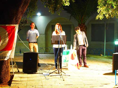 La sera stessa dell’inaugurazione è stato realizzato al Teatro del Fuoco, uno spettacolo dal titolo “Tarantelle che... passione”, con esecuzioni musicali, letture e proiezioni video (foto 4). In un teatro stracolmo di spettatori, amanti delle memorie autentiche della nostra terra, sono state messe a confronto tradizione, riproposizione e innovazione delle tarantelle garganiche. Ad apertura dello spettacolo c’è stata l’esibizione delle “Cantatrici di Ischitella” (foto 5), che hanno fatto conoscere un meraviglioso repertorio di canti della tradizione polivocale garganica appreso durante i lavori campestri.