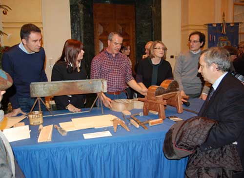 Clicca per Ingrandire Terminata la mostra "La chitarra battente nella tradizione musicale del Gargano" (foto del titolo di Alfonso Toscano, costruttore e titolare del sito www.alfonsotoscano.it; ndr) che chiude positivamente, con largo consenso di pubblico e di critica alla presenza delle più importanti testate giornalistiche e televisive, il primo step durato cinque giorni di un progetto di più ampio respiro dedicato alle “Tarantelle del Gargano”, quale bene immateriale da candidare all’Unesco. Organizzata dal Club Unesco di Foggia, con la collaborazione della Provincia dauna, la kermesse si è aperta il 5 gennaio con l’inaugurazione, nella prestigiosa Sala del Tribunale di Palazzo Dogana, della mostra curata dall’etnomusicologo Salvatore Villani, direttore del Centro Studi Tradizioni Pugliesi, sintesi di una trentennale ricerca sullo strumento in area garganica (foto 1 sotto, terzo da dx; ndr).