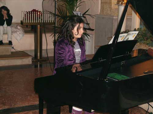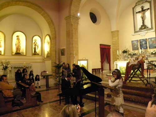 Clicca per Ingrandire La magia delle dolci note natalizie riscalda i cuori, e dalla navata centrale ai piedi del presbiterio della chiesa di Sant’Elia Profeta si diffonde un augurio di pace e fratellanza. Nel luogo di fede più amato dai Peschiciani, gremito in ogni ordine di posti, si è svolto il concerto pianistico dell’Epifania organizzato dall’Associazione culturale, musicale e teatrale “Arcobaleno”. La musica ancora una volta racconta, svela, unisce e lo fa nella maniera più semplice che ha a sua disposizione: i suoi giovani musicisti, capaci di proporre un vasto repertorio.