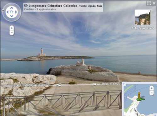 Anche se attraverso un freddo strumento informatico, restano immutate le emozioni che certi scorci del Gargano riescono a trasmettere: l'isolotto di Sant'Eufemia (foto del titolo; ndr), il monolite del Pizzomunno a Vieste, il rione Junno o la facciata laterale del Santuario di San Michele Arcangelo di Monte Sant'Angelo, ne rappresentano solo qualche esempio. Google Street View, come Ondaradio insomma, tra le vie della Città Gargano.