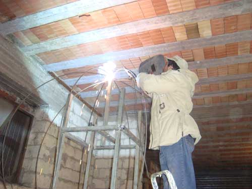 Avviata dunque la lavorazione della struttura portante, è nato un altro problema: recuperare i fondi per l’acquisto del materiale in quanto il Comune, cui si faceva affidamento, ha chiuso tutte le borse. Colpo di genio e la proposta: “Organizziamo un Mercatino di Natale”! E così, grazie ai cittadini che hanno contribuito mettendo piacevolmente mano al portafogli, ma soprattutto grazie a una coppia formidabile - le “wonderwoman” Corinta Fasanella e Tea Lamargese, autentiche forze della natura in qualità di venditrici, - una domenica mattina pre-festività i nostri “mastri” sono riusciti a raggranellare il denaro necessario. E il progetto ha così cominciato a prendere forma: uno scheletro a base quadrata, totalmente realizzato in ferro, dal quale far partire un perno centrale alto più di tre metri (foto 3-4-5-6).