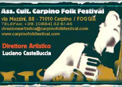 Clicca per Ingrandire Domenica 7 febbraio nel Cinema Teatro Italia di San Nicandro Garganico, alle 20.30, avrà luogo lo spettacolo di beneficenza di Rosapaeda (foto del titolo; ndr): “Concerto per un amico”. Organizzato dall’Associazione Culturale Carpino Folk Festival (foto 1 sotto) in collaborazione con l’Accademia Musicale “Solis Specimen” e col patrocinio dell’Assessorato alla Cultura del Comune di San Nicandro Garganico, il concerto è finalizzato alla raccolta di fondi a favore di un amico musicista che si trova in una grave situazione di precarietà economica.