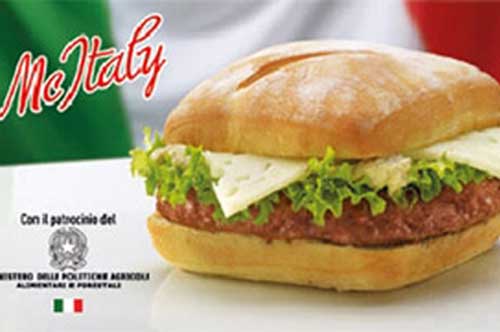 Clicca per Ingrandire Lo scorso 26 gennaio nella sede del McDonald’s della romana Piazza di Spagna, un entusiasta Luca Zaia, ministro delle Politiche Agricole e Forestali, ha inaugurato la stagione del panino 100 percento italiano: il “McItaly”. La new entry, distribuita per ora solo nei 392 punti vendita italiani, è composta da carne nazionale, olio extravergine di oliva, Asiago Dop, Bresaola della Valtellina Igp, pancetta della Val Venosta, grano saraceno, cipolle di Tropea e carciofi romani.
