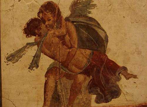 I baci più antichi delle arti figurative sono quelli conservati negli scavi di Pompei (foto 4) o nel Gabinetto erotico del museo archeologico di Napoli, in linea con una erronea tradizione storica che vuole collocare la nascita del bacio, in senso moderno, al 1° secolo a.C. quando, per combattere l’abitudine di bere delle donne, fu stabilito che qualsiasi uomo avesse incontrato per strada una parente poteva avvicinarsi per controllarne l’alito. Naturalmente se accertarsi della sobrietà è relativamente semplice, ben più difficile è assicurarsi dell’amore di una donna, per cui il bacio, da semplice avvicinamento delle labbra, sarebbe divenuto ciò che tutti noi ben sappiamo, sin da bambini.