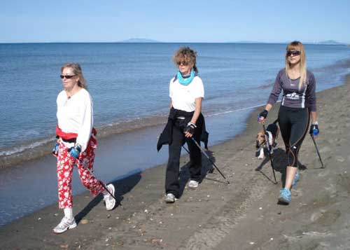 Mattina: dimostrazione di Nordic Walking spiaggia di Peschici (foto 1 sotto, repertorio).