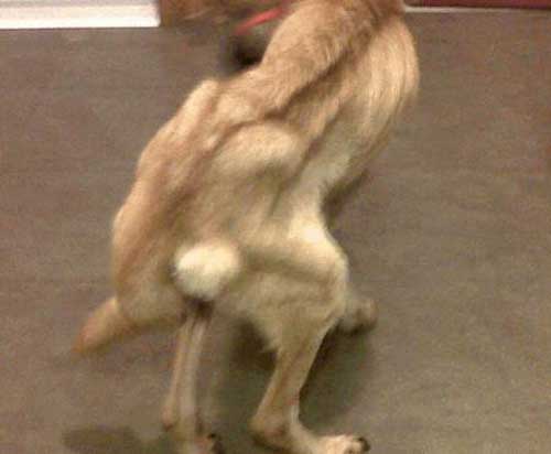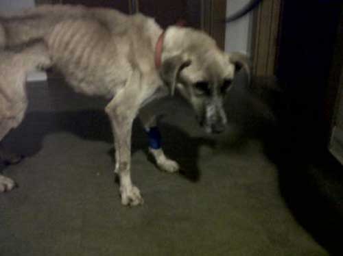 Clicca per Ingrandire Lei è Paola! (Foto del titolo e sotto; ndr.) Non ho parole, ma tanto non importa perché le parole non servono. Se riuscirete per un attimo a distogliere lo sguardo da questo corpo che altro non è che un misero mucchietto di ossa tenuto insieme da pelle sottile come carta crespa, vedrete tutto l`orrore possibile e immaginabile nei suoi occhi. Perché per ridurre un cane in questo stato non basta che resti digiuno un giorno, non basta nemmeno che non trovi cibo per una settimana, occorrono mesi di stenti durante i quali questa creatura è rimasta in strada e megliaia di persone avranno posato i loro occhi aridi su di lei.