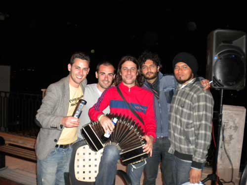La formazione (foto del titolo; ndr) - composta da Andrea Moretti (chitarra e basso), Pablo Corradini (tastiere, flauto traverso e bandoneon) e Jannesson Cabral (percussioni) e fortemente voluta sulla costa garganica dall’amico-organizzatore locale Marco Fasanella (foto 1 sotto, al centro) - ha affascinato il pubblico dei locali dove si è esibita, proponendo a sorpresa altre musiche sudamericane oltre al preannunciato tango che ha ammaliato tutti fino a richiederne ogni volta il… tris: l’ormai famoso “Liber-Tango”.