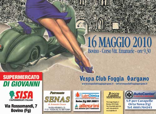 IL PROGRAMMA = Il Vespa Club Foggia Gargano, in collaborazione con il Comune di Bovino e la Proloco di Bovino, organizza il 2° Raduno "Bovino in Vespa" per domenica 16 maggio 2010.