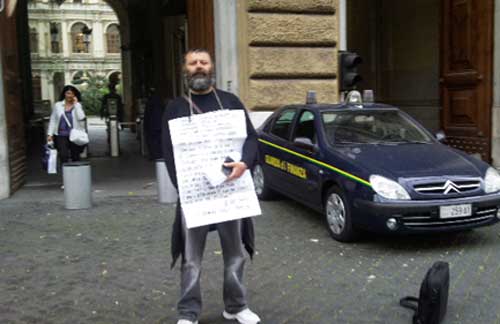 “Il caso Michele Panella è un caso che deve farvi riflettere, non si può rimanere in silenzio senza intervenire! Ora che sono ritornato dipendente della Soc. Tributi Italia spa, mi ritrovo ancora in un grosso problema, che non è solo mio ma di 600 e più dipendenti Tributi Italia spa (200 nella Regione Puglia). Come sa, caro presidente, l'azienda è prossima al fallimento, il Ministero del Lavoro ci ha messo in cig per un anno sino al 15 marzo 2011. E’ tutto scritto nel verbale di accordo del 9 marzo 2010 tra Ministero, sindacati e azienda. C'è stato un presidio (foto del titolo e 1 sotto; ndr) organizzato dalla Filcams-Cgil presso Ministero delle Finanze a Roma il 4 maggio 2010. Allo stato attuale non vi è alcuno spiraglio di un futuro occupazionale. Allo scadere dei 12 mesi i lavoratori andranno in mobilità.